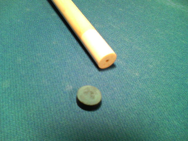 従来からのテーパーに戻すべく、 必死のパッチで削りダシを…とろろ昆布職人になれるかも? 、ヽ`(~д~*)、ヽ`…(汗) というのも元々このキューグリップはテーパーがあり、 グリップの中心がかなり細かったんです。 僕は良い感じだったんですが… 友人が革巻きをやってるって言うんで、 じゃあ巻いて貰おうかって気軽に渡してしまったんです。 革を巻くにはテーパーを直す必要があり、 僕もあまり深く考えずに… でも実は革嫌いの僕はそれ以来一回もこのキューを使っていませんでした。 それで革を剥いで目に入ってきたのが、 "/(*▽*) アイタタ・・・ 樹脂でした。 結構、厚くベッタリと… 勿論、カチカチに乾いてますよ どうしようと?悩んだ挙げ句、 気付けば、削りだしてました。 σ(^_^;)アセアセ... まだまだ、半分なんで… (/≧◇≦\)アチャー!! ガンバ!(*゚ー゚)ノ"☆/;^-^)ノベシャッ
