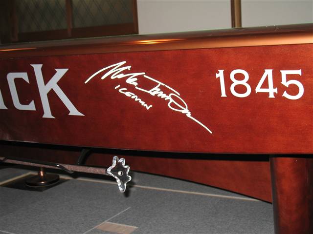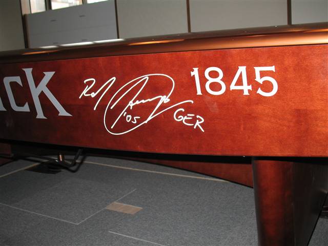 なんと勇み足だったかも!?(^^;) またまたカモられちった。 やっぱり、新羅紗は気持ちいいですね! こう言うとなんですが、漫画喫茶で羅紗の手入れを頻繁にされてるのには驚きです。 純玉屋でもそうそう新羅紗は…ですよね。時楽さんを見習って欲しいものです。 シモニスやニッケなど色々張ってあるのでグッドですよ。 僕は基本的にニッケ(日本毛織)の羅紗が好きです。 最近はシモニスのお店が多いですけどね! スーパーガリオン(1台定価120万円)にニッケの新羅紗が…懐かしい ↑ おっさんやね! スーパーガリオンの石版は大理石でした。 ブランズウィックはスレートですね。 どちらにしても腕が悪い僕には関係ありませんが(^^;) 流石、日勝亭さん。 手際よく、しっかり調整されてました。 お兄ちゃん二人におっさん一人でしたが、おっさんの方の職人さんは、 僕がアルバイトしてたプールバーの張り替えにも来てたから、 いったい勤続年数は何年?なんだろう? 今の日勝亭社長を専務と呼んでた頃から… というより、俺は何年ビリヤード業界に…おっさんがおっさんにおっさんと(-_-) もうじきウオーキングディクショナリーだな!間違いなく。 ↑ 新羅紗の加減はこんなモンです(^_^)v クリックして画像をご覧下さい! (A級1班コダセイさん生出演、実況はタッドマニアでお送りいたします)