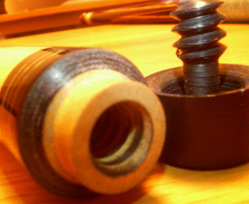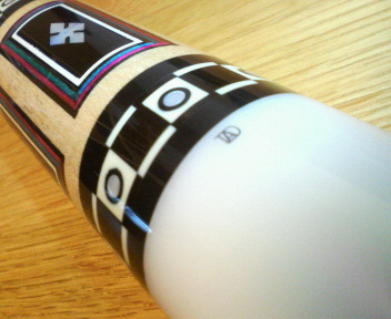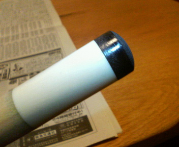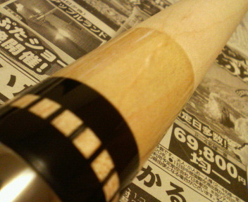 タッドマニアを宣伝するだけあって、お陰さまでシャフトは沢山あります(同じジョイント同士は全部ピッタリ合います)。 しかし、この写真の組み合わせが一番振りやすいのは何かの皮肉か? 写真を良ーく見て下さい(残念ながら外観を見ただけでは一切わかりません)。 このシャフトはオリジナルではありません。 わかりましたか?(^^;) 実物も組み立ててあれば一切わかりません。 シャフトとバットを外してリングの中身をのぞき込まない限り。 This shaft was made by Yoshimura. 流石、プロ!良いお尻をしてますね(*^_^*)←危ない!? 業界人の言葉を借りれば、”むしゃぶりつきたくなるお尻”って言うそうです(関優勝談)。