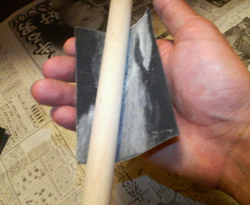 シャフトに耐水サンドペーパーをかけ、タップを成型しました。