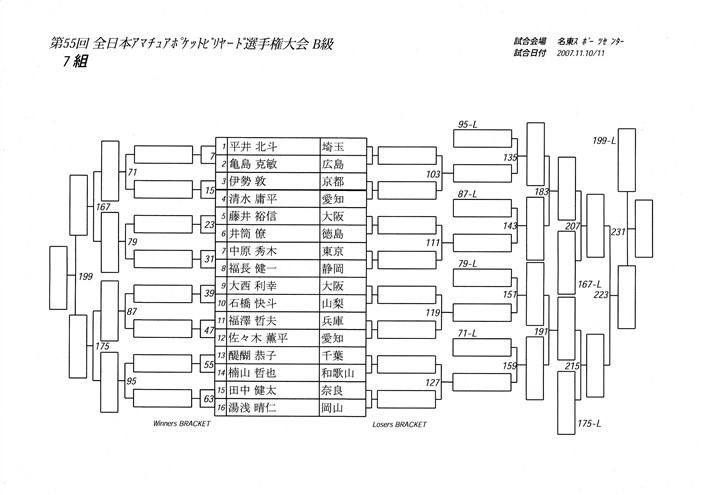 もう締め切ってますが開催要項は下記アドレスをご参照下さい。 http://onthehill.seesaa.net/article/59869532.html 次は11月10日・11日「チャリティー」、11月18日「TAD CUP 2007」と続きます。 そして出場権は当然ありませんが、観戦券(権?)がありますので、 最後は全日本選手権となります。 今年の「チャリティー」で優勝し、 来年のスポレク辺りでA球優勝出来れば年末の選手権には間に合うかな? なんてアホな妄想にふけりながら…年を越していきそうな感じです。 12月は忘年会(棒年会や暴年界など)を経て、 年末の最大イベント… 「競輪グランプリ」で終わります。 来年は岸和田からスタートかな?? ( ̄∇ ̄;)ハッハッハ