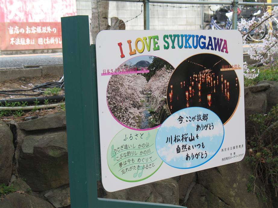 一年ぶりにお花見にいって参りました。 夙川、芦屋川沿いの桜がほぼ満開に! 昨年は家の近所に咲いてた数本の桜で花見やったんで、 久しぶりに本格的な花見でした。 伊勢市の宮川沿いの花見も最高でしたが、やはり地元の花見が格別。 では恒例のスナップ写真で御報告。 花見の話題でおもろいコメントも期待できないかなあ? 夜桜行ってる酔っぱらいの方々!コメントまってますよん。 (⌒~⌒)ニンマリ 阪急夙川駅から阪急苦楽園口駅までの間を夙川沿いにぶらり… 新しい発見!?お花見って人間だけでは無いんですねえ! (⌒▽⌒;) オッドロキー お天気にも依りますが…週末くらいまでは楽しめそうですよ! 花より団子の方はもとより…夜桜で一杯のお父さんまで… うぃー~~~~~(/ ̄□)/~(酒) ヒック (o_ _)/(酒)ドン (。^_・)ノ ―●●● あんこの団子どうぞ …次回、芦屋編へつづく (ノ⌒∇)ノ*:・'゜☆。.:*:・'゜★゜'・:*:.。.:*:・'゜:*枯れ木に花を咲かせましょう♪