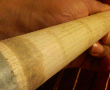 ああ、(#´ー´)旦 フウゥゥゥ・・・ 疲れた… それで止めれば良い物を… なんと!糸巻きに挑戦です!Σ(▼□▼メ) まあ、以前釣り竿の糸巻き等はやったこともあり、 巻きはじめましたが、麻糸ナンで指が/(*ε*) アイタタ・・・ タッドのグリップを見たのは初めてなんですが、 流石に( ・∀・)イイ!!木材を使ってますね! 一本の木からバットを作り出して、 バランスやパワーを調整するんだから神業です。 可哀想に。・゚・(ノД`)・゚・。 このキュー…ボロボロにしてます。 ( ゚o゚) ハッ イカン オレ ハ ナニ ヲ ヤッテルンダ (^_^A; \(_ _ ) ハンセイ バットエンドにはエクステンション加工を施して有るんですが、 実はその為にシリアルが…ドリルで…σ(^_^;)アセアセ... 後悔先に立たず… もうすぐ、タッドでは無くなります。多分… 新ブランドは!? 勿論、Tad's Maniaでタッドのロゴ横にMマーク! ホンマに付けたろかな?