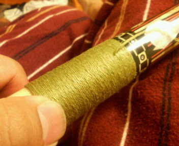 今日はタッドのグリップの革巻きを剥ぎ、